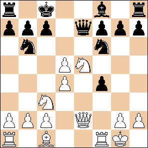 | ... | Cfd5 | Un mejor intento de activar el juego negro hubiera sido 13. ... g5; 14. Ad2 Ag7. |
